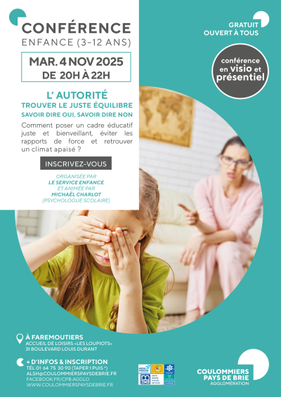 Cette conférence est organisée par le service enfance de la communauté d’agglomération Coulommiers Pays de Brie et animée par MICHAËL CHARLOT psychologue scolaire.