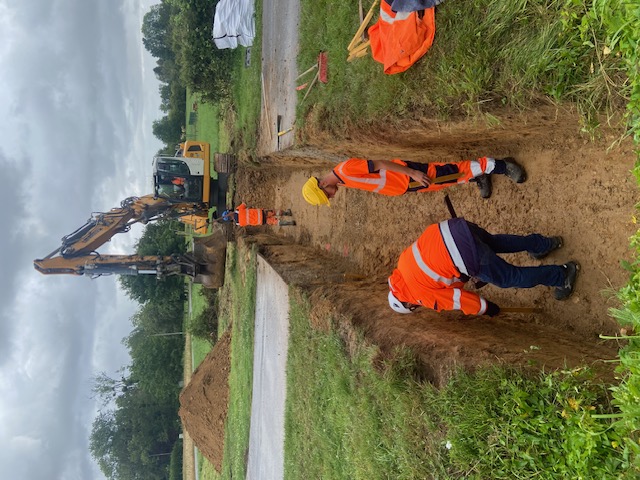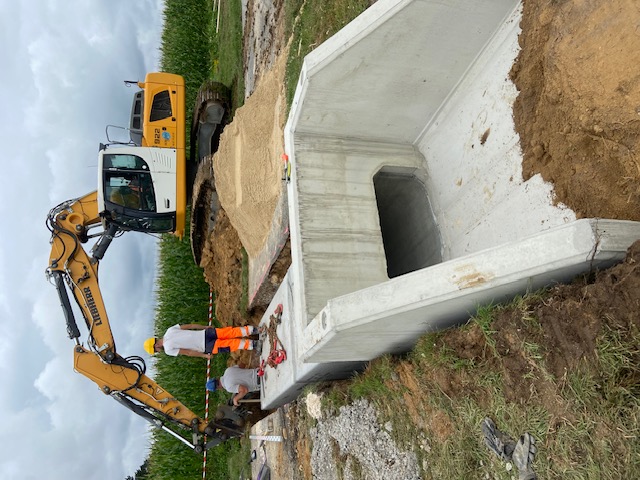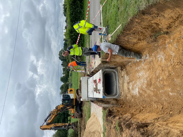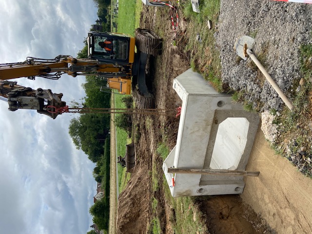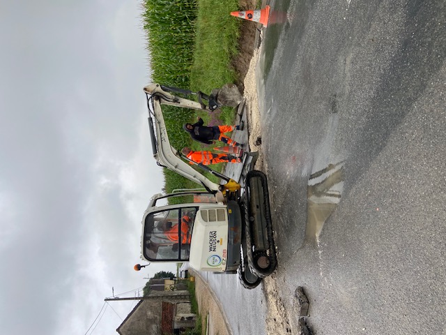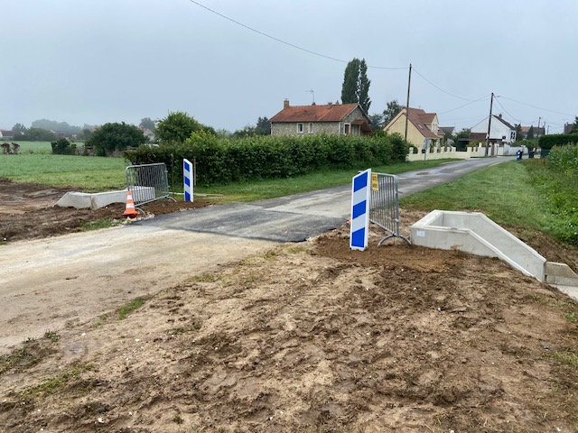 ✅ Rue du Bois Martin : création d’une traversée sous chaussée permettant de soulager un fossé qui déborde dans une parcelle humide appartenant à la commune ; curage de 40ml de ce fossé ; création d’une noue afin d’évacuer les eaux pluviales dans la parcelle de la commune.