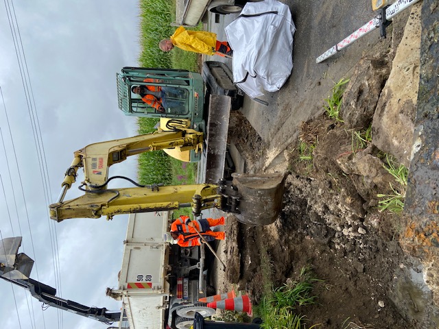 ✅Rue du Tillet : Curage d’un fossé (245ml) ; création de 3 redans sur le fossé ; pose de tête de pont en entrée de buses.